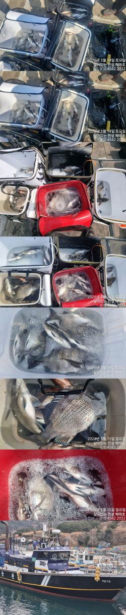 (( 예약은 전화보다 홈페이지가 빠르고 정확합니다 ))** 너무 늦은 시간 전화는 자제해 주십시요 ,,, 새벽 안전한 출조를 위한휴식,,, 그리고 소중한 가족과 함께 할수 있는 저녁시간이 되면 좋겠습니다 전설해태호는 2항차 3항차 조황이 아닌 단1항차 순수한 갯바위 출조조황입니다 2항출조를하지않기에 다음출조를 위해 급하게 서두르지 않고 한포인트 한포인트 신중하게선정하여 포인트 하선해 드립니다 3/28 토요일 대대호황 대부분 포인트 감성돔 바글바글,,,,며칠후 4월부터 상상을 초월할만큼 선박유류값 인상이 많이 된다고 합니다 아마도 전국적으로 모든 낚시선 선비가 매우많이 인상될듯 합니다선비인상전 한번이라도 출조 하시기 바랍니다 대물감성돔 전설 해태호 ,,,감동을 전해 드리는 전설 해태호 입니다 ,,, 토요일 ... 이제 날도 매우 따뜻해 지면서 겨울 감성돔 시즌이슬슬 끝나가는듯 합니다 ,,,